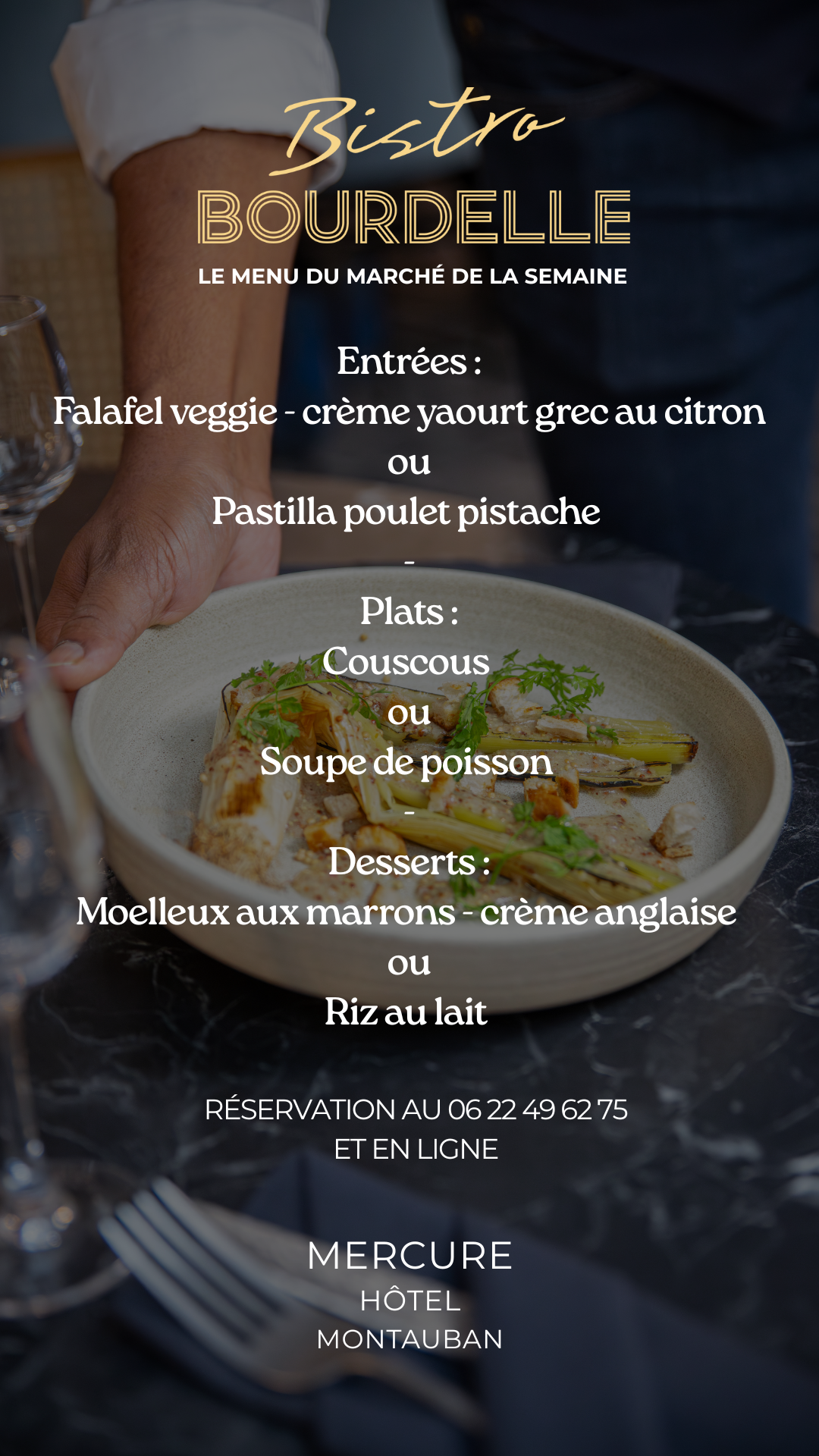 Chaque semaine, notre bistro vous propose un menu savoureux et varié, élaboré avec des produits frais et de saison. Que ce soit pour une pause gourmande ou un déjeuner d’affaires, profitez d’une cuisine qui allie créativité et tradition.