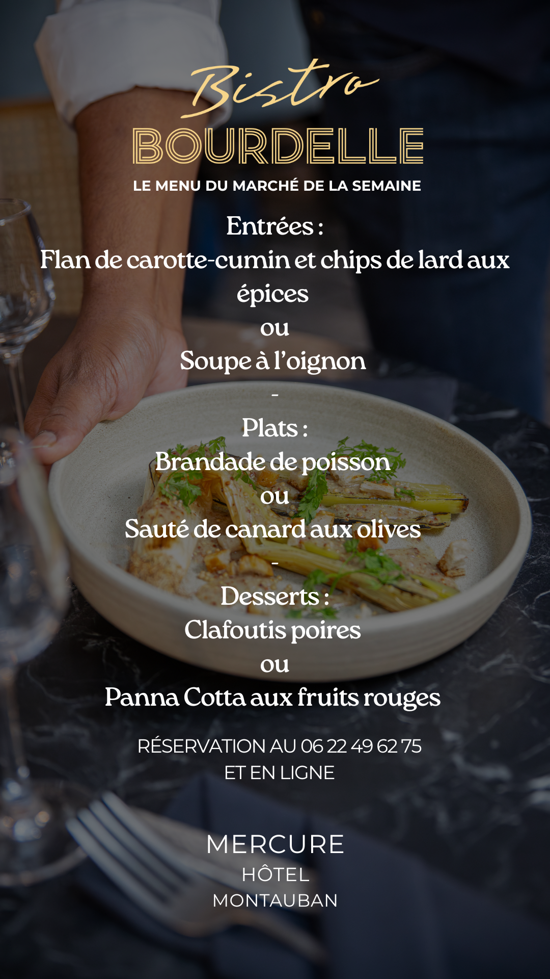 Every week, our bistro offers you a tasty and varied menu, prepared with fresh, seasonal produce. Whether for a gourmet break or a business lunch, enjoy cuisine that combines creativity and tradition.