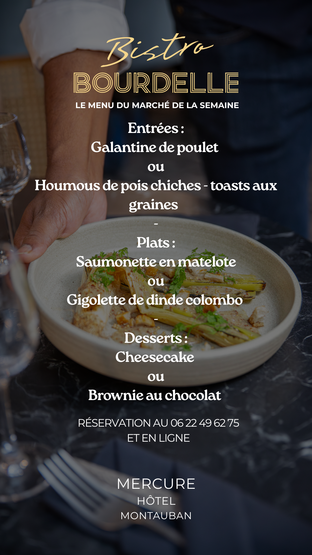 Chaque semaine, notre bistro vous propose un menu savoureux et varié, élaboré avec des produits frais et de saison. Que ce soit pour une pause gourmande ou un déjeuner d’affaires, profitez d’une cuisine qui allie créativité et tradition.